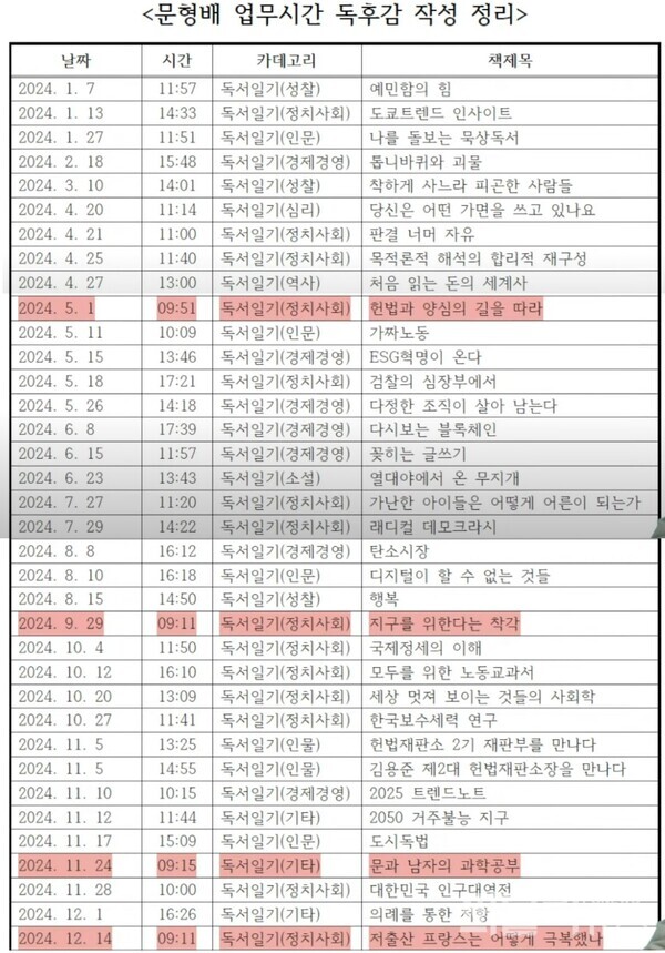 이에 대해 문 대행은 TV조선과의 통화에서 업무 시간에 독후감 등을 자신의 블로그에 업로드한 것에 대한 비판이 나오는 것을 두고 "업무와 무관하지 않다"고 반박했다.
