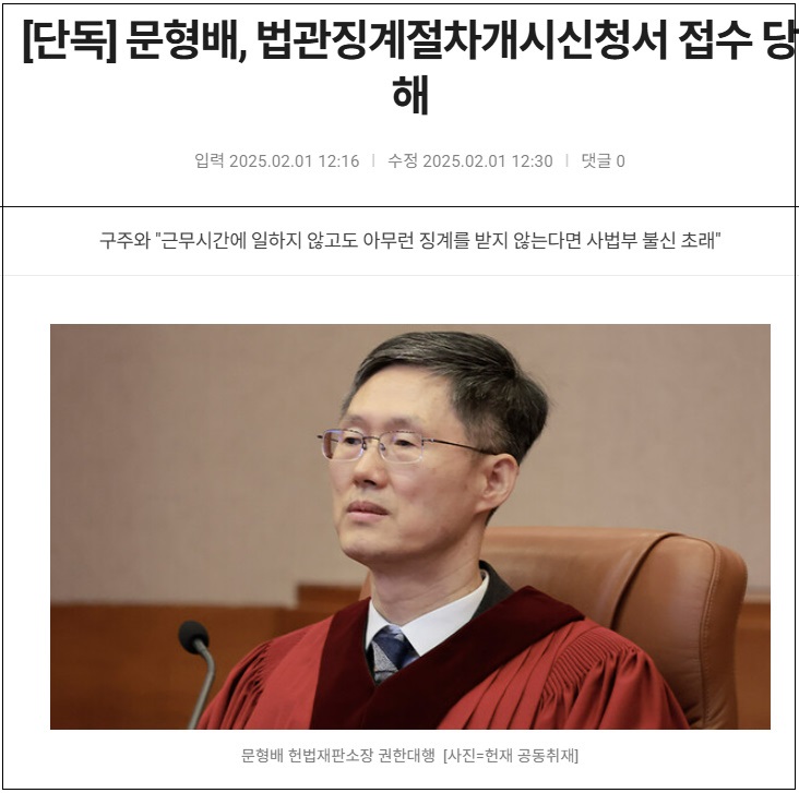 헌재 '문형배'에 법관징계절차 촉구 신청