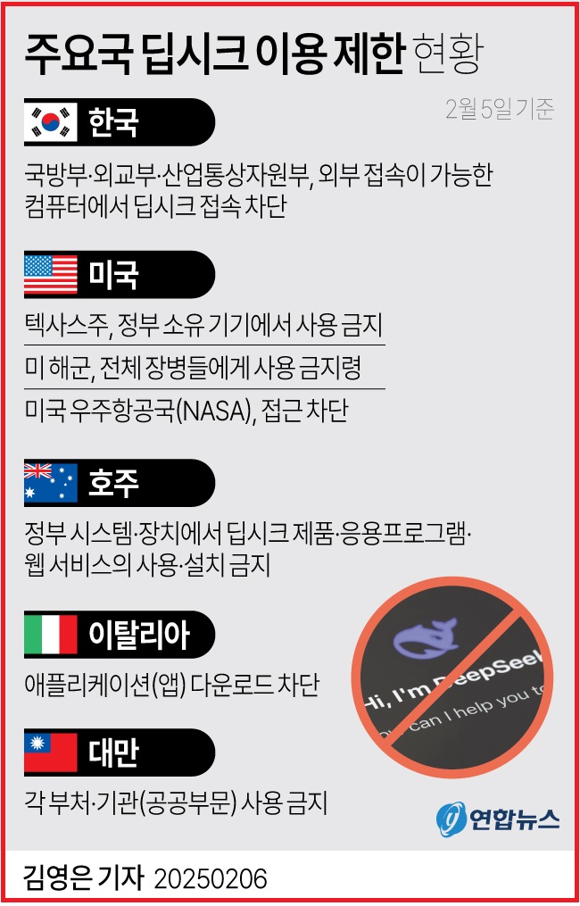 주요국 딥시크 이용 제한 현황