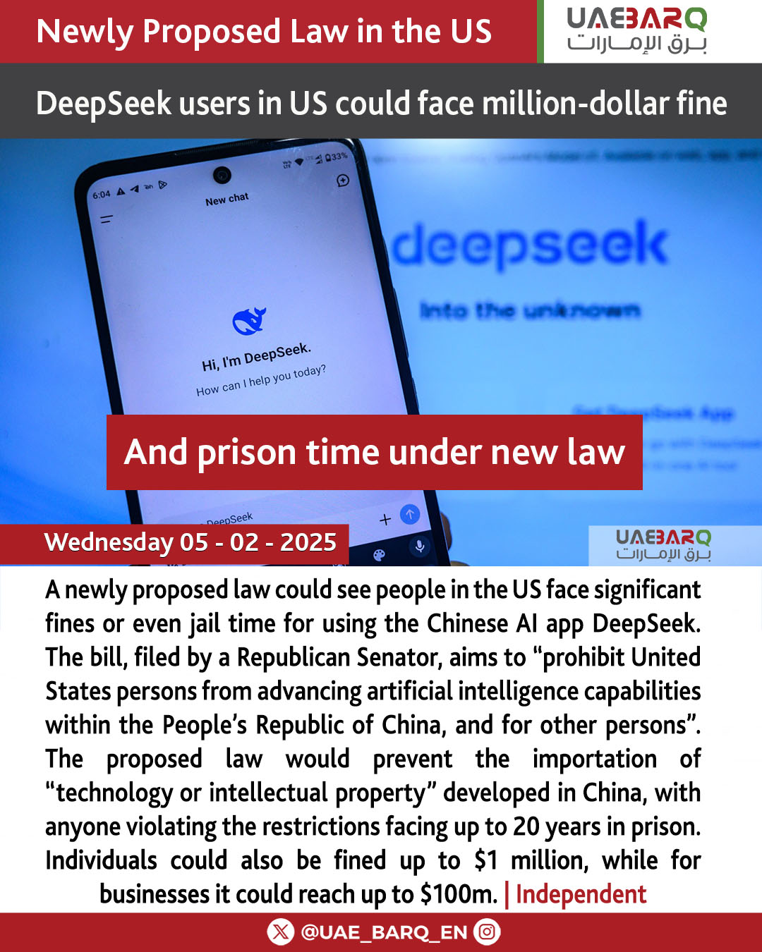미국 DeepSeek 사용자, 수백만 달러 벌금과 징역형 법안 나온다 DeepSeek users in US could face million-dollar fine and prison time under new law
