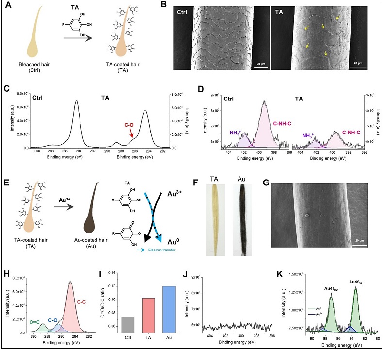 이해신 교수 연구팀은 탄닌산이 모발의 주요 단백질인 케라틴과 강하게 결합해 모발 표면에 지속적으로 부착될 수 있음을 입증했으며, 이를 활용해 특정 기능성 성분을 제어된 방식으로 방출할 수 있음을 확인했다.