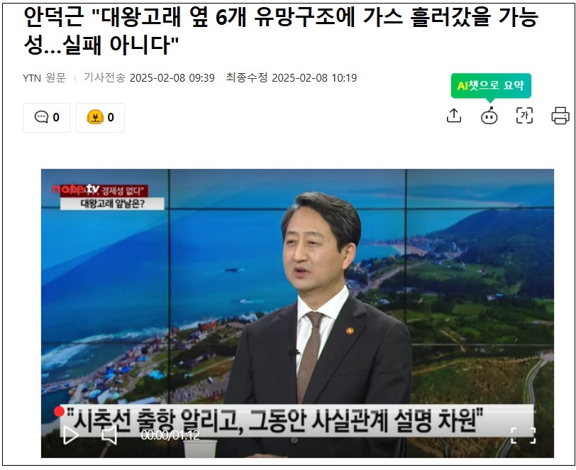 앞서 산업통상자원부는 전날 정부세종청사에서 브리핑을 열고 "시추 과정에서 가스 징후를 일부 확인했지만, 그 규모가 유의미한 수준은 아니었다"고 발표했다.