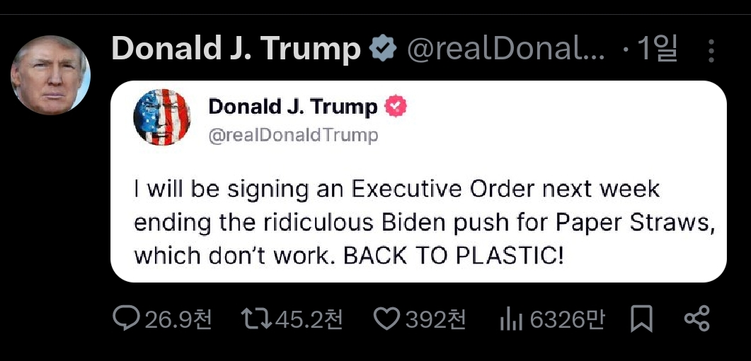 트럼프, 플라스틱 다시 사용 행정명령 시행 Trump to be signing Executive Order 'Back to Plastic'