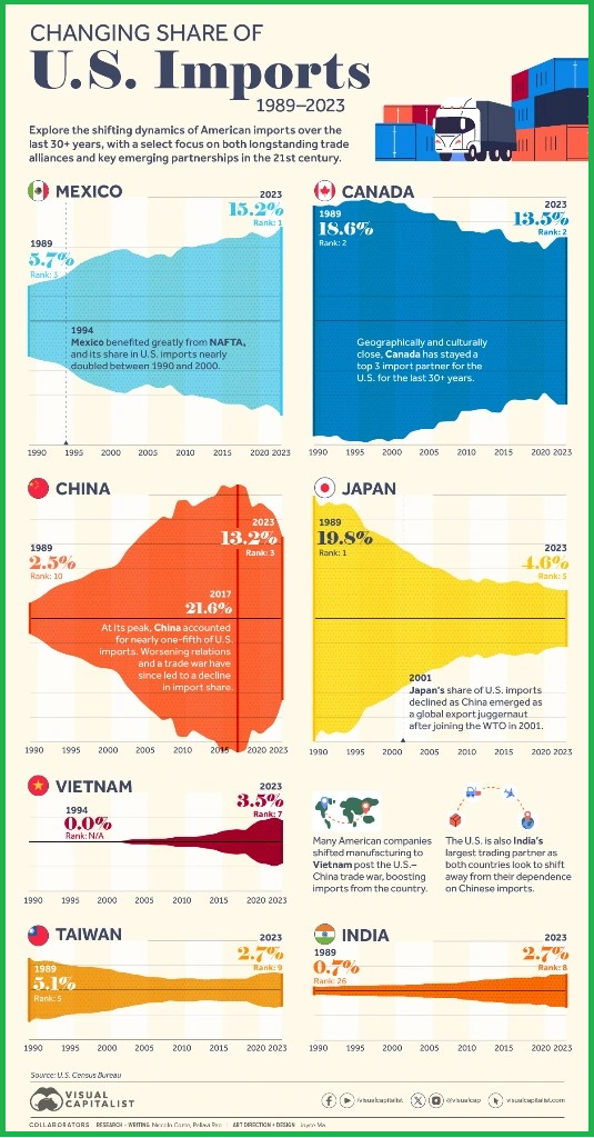 정부와 미국 철강협회의 데이터에 따르면, 미국 철강 수입의 가장 큰 국가는 캐나다, 브라질, 멕시코이고, 그 다음으로 한국과 베트남입니다.