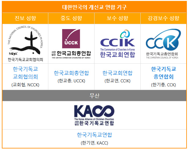 대한민국기독교연합기관협의회. (사)한국기독교보수교단총연합회. (사)한국기독교총연합회. (사)전국17개광역시도·226개시군구 기독교총연합회 및 전국기독교총연합회. 자유한국교육원