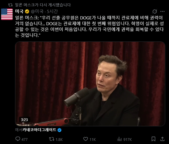[DOGE] 미국 구조조정에 열일 하는 머스크의 말말말