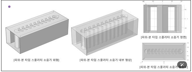 철도연 연구진은 이러한 문제를 해결하기 위해 소음이 특정 방향으로 반사되거나, 소리끼리 부딪혀 약해지는 효과를 유도하는 내부 칸막이, 스플리터를 피쉬본 모양으로 설계했다. 이를 통해 흡음재 없이도 소음을 줄일 수 있도록 했다.