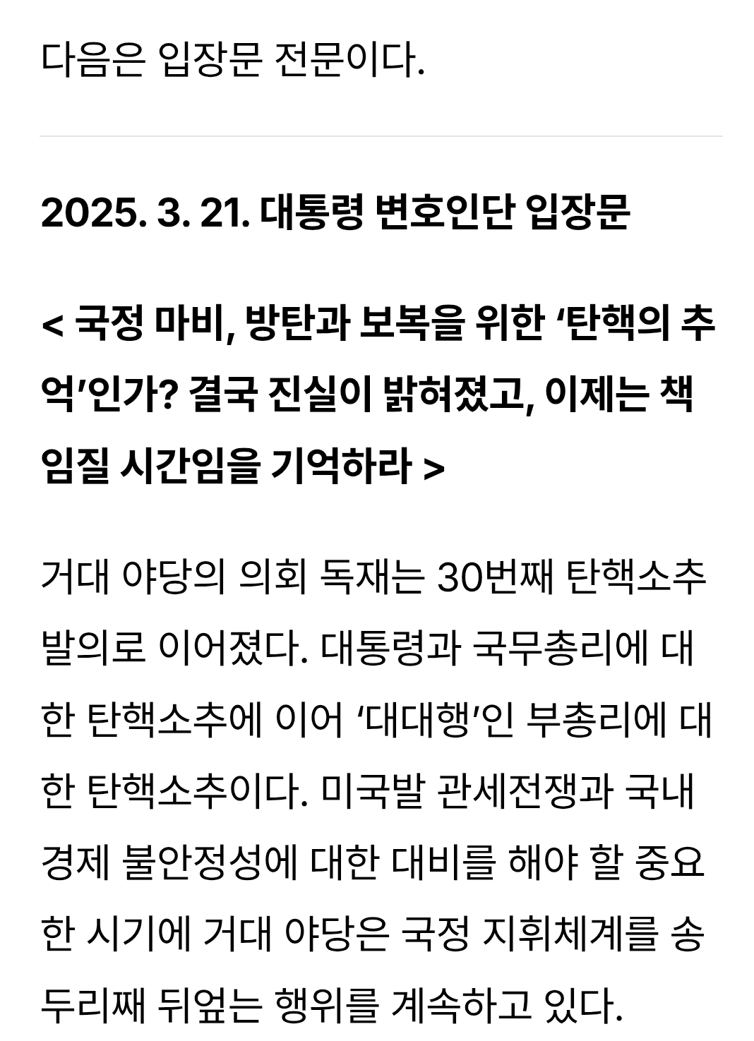 "30번째 국정마비...이제는 벌인 일에 책임져야할 시간" 윤대통령측