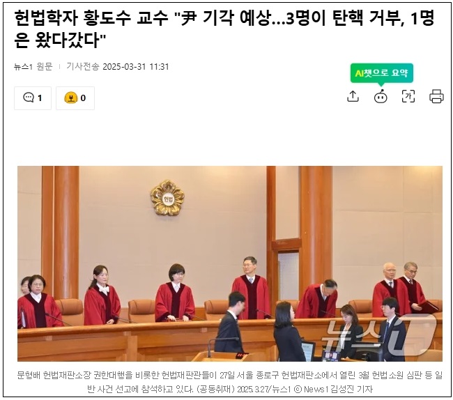 헌법학자 언론 등 윤석열 대통령 탄핵 심판 "기각될 것 같다"