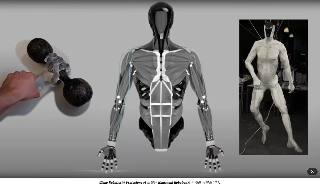 "클론 최초의 근골격계 안드로이드, 프로토클론을 만나보세요. 세계에서 가장 해부학적으로 정확한 로봇입니다." 회사 관계자는 영상 캡션에 이렇게 적었습니다. "자연스러운 인간 골격을 기반으로 제작된 프로토클론은 클론의 독점 인공 근육 기술인 1,000개 이상의 근섬유로 구동됩니다."