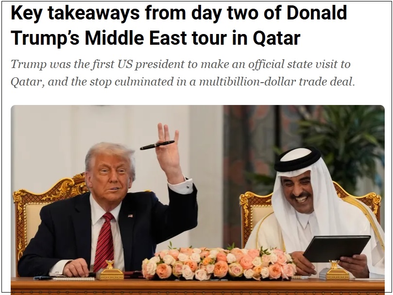 도널드 트럼프는 카타르를 방문해 중동 순방을 이어갔습니다. 이는 미국 대통령이 걸프 국가를 공식 국빈 방문한 첫 사례입니다.