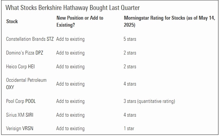 그리고, 버크셔가 2025년 1분기에 매수하고 매도한 주식은 무엇인가.