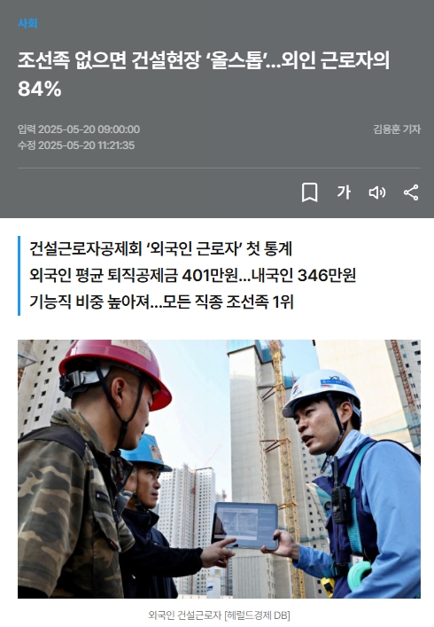 한 건설사 관계자는 "외국인이 아니면 젊은 사람을 보기 어렵다며 "요즘은 50대도 젊은축에 속한다"고 말했다.