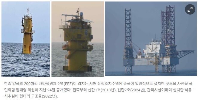 최근 중국은 우리 서해 이어도 인근 지역에 3개의 구조물을 설치했다. 일각에선 대만침공이나 영해 확장을 위한 사전 작업을 하는 게 아니냐는 우려가 제기됐다. 중국 정부는 이에 대해 “양식 시설”이라고 일축한 바 있다.