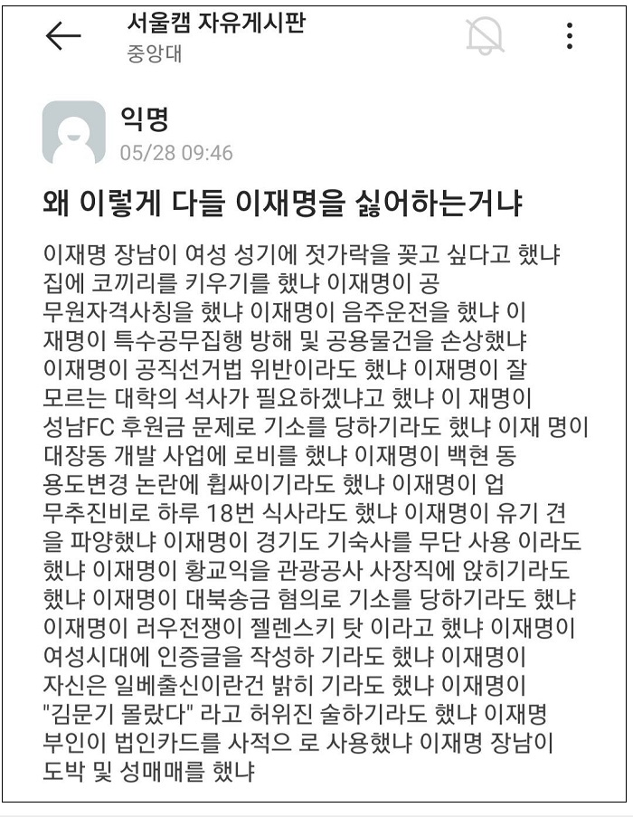 "왜 이리 이재명이를 싫어하는게냐!" 서울대