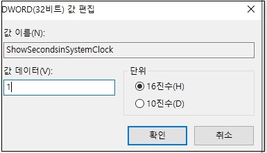 ShowSecondsinSystemClock로 입력