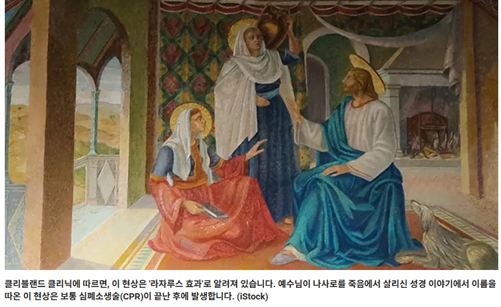 클리블랜드 클리닉에 따르면, 이 현상은 '라자루스 효과'로 알려져 있습니다. 예수님이 나사로를 죽음에서 살리신 성경 이야기에서 이름을 따온 이 현상은 보통 심폐소생술(CPR)이 끝난 후에 발생합니다. (iStock)