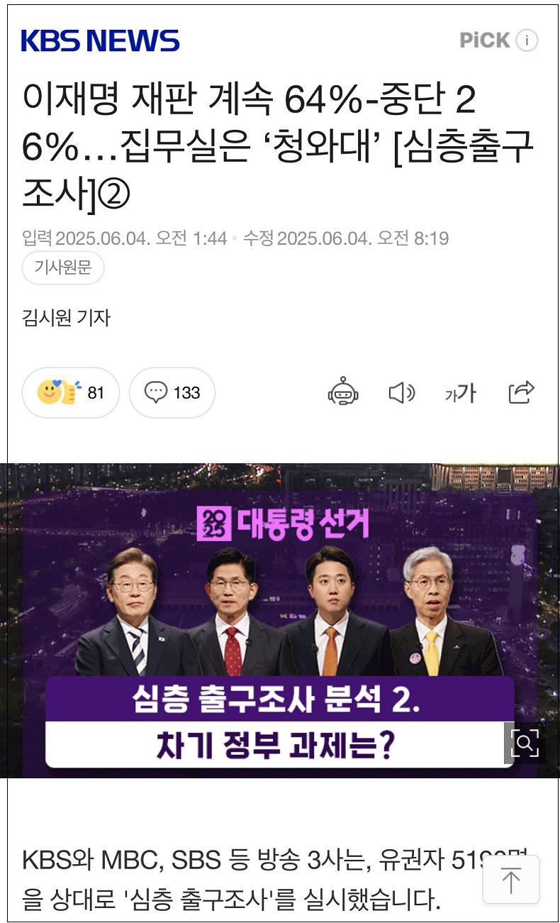 출구조사는 51%안데 재판은 계속이 64%?
