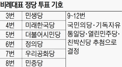 4·15 총선 비례대표 국회의원을 선출하기 위한 정당투표의 기호가 결정됐다.