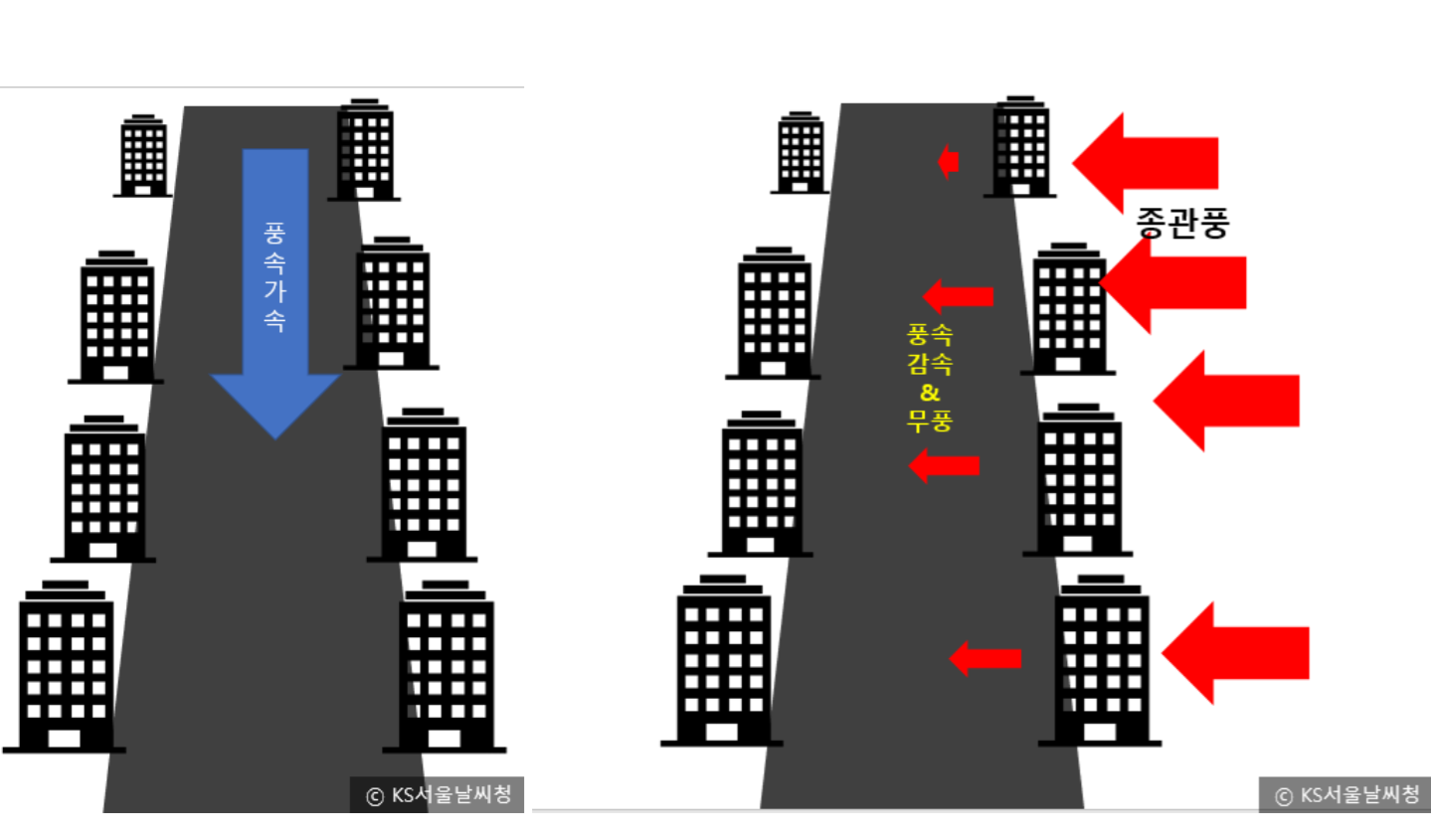 빌딩풍의 원리와 모식도/서울기상센터블로그