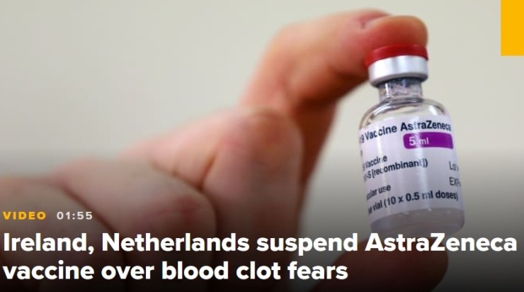 아일랜드 네덜란드도 혈전 공포로 AZ 접종 중단 Ireland, Netherlands become latest countries to suspend AstraZeneca vaccine over blood clot fears