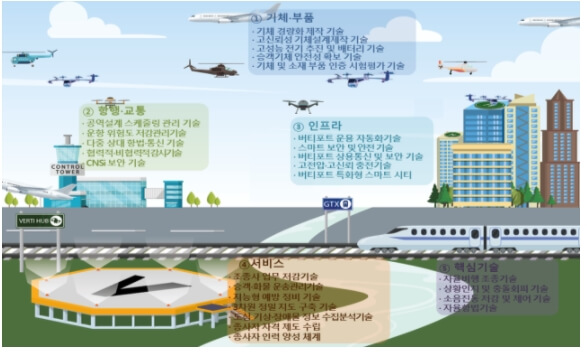 글로벌 UAM시장에서의 가격 경쟁력 및 사업자의 운영 수익성 확보를 위한 기체·부품 양산 및 정비기술을 개발하고 승하차 시간 단축 등 이용객 편의 증진을 위하여 간소화된 보안검색 기술을 기술개발 로드맵에 포함하였다.