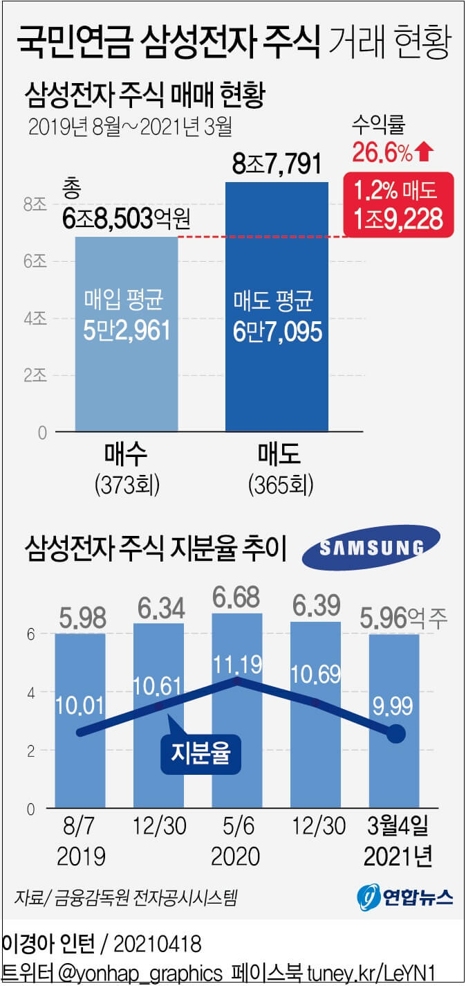19개월이 지난 올해 3월 초 국민연금의 보유 주식은 5억9천641만주로 줄어들면서 지분율도 10% 아래(9.99%)로 내려왔다.