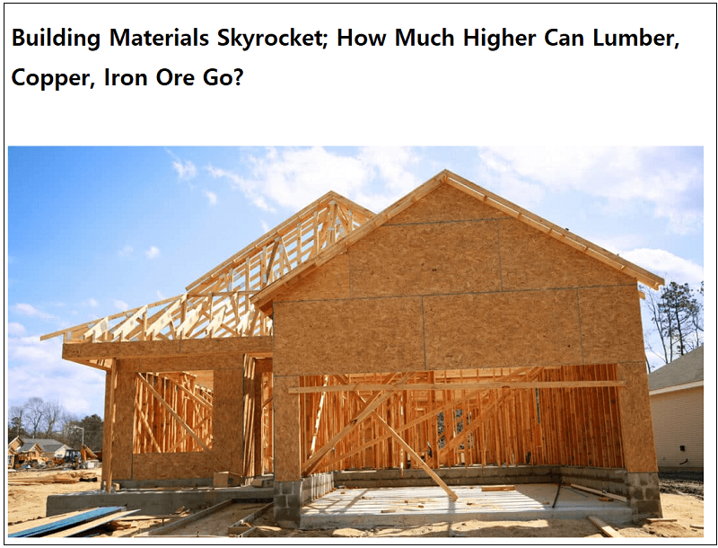건설자재난 겪고 있는 미국...목재 가격 1년만 370% 상승 How Much Higher Can Lumber, Copper, Iron Ore Go?