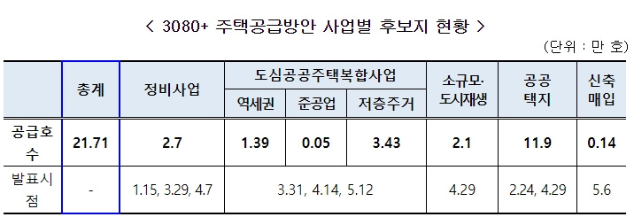 3080+ 주택공급방안 3차 도심복합사업 후보지 선정 [국토교통부]