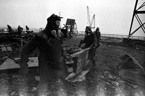 당시 체르노빌 현장의 참상을 취재하던 사진기자인 이고르 코스틴이 찍은 체르노빌 원전을 청소하는 '바이오 로봇'들의 사진