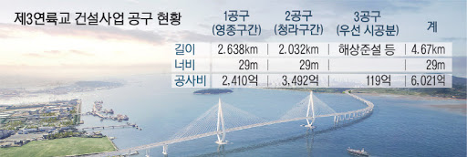 한편 제3연륙교는 길이 4.67㎞, 폭 29m의 왕복 6차로와 보도 및 자전거 도로로 건설된다. 3개 공구로 나눠 진행 중인 제3연륙교는 물량장과 해상준설 등 우선 시공분인 3공구가 지난해 말 착공됐으며 1, 2공구는 오는 7월 중 기술제안서 평가를 실시, 낙찰자를 선정한 후 오는 10월 착공하여 2025년 12월 준공될 예정이다.