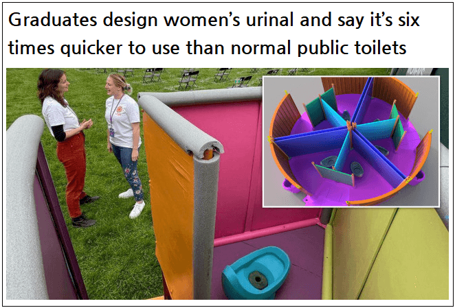 여성 화장실의 긴 줄 획기적 단축한 특별한 아이디어 VIDEO:Graduates design women’s urinal and say it’s six times quicker to use than normal public toilets