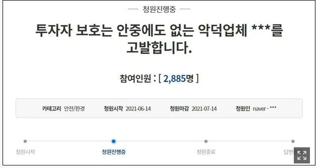 투자 실패로 인한 좌절감은 거래소에 대한 분노로 이어졌다. 지난 14일 청와대 홈페이지에는 업비트를 고발한다는 내용의 국민청원 글이 올라왔다. 청원인은 “투자자 보호는 안중에도 없는 ***를 고발한다. 마로, 페이코인 등 근본도 없는 ‘김치 코인’들을 상장한 뒤 별 다른 이유 없이 상장 폐지했다”며 “개인 투자자들이 막대한 피해를 입고 있지만 한 마디 사과와 보상도 없다”고 썼다. 이 청원은 나흘여 동안 총 2885명의 동의를 얻었다.