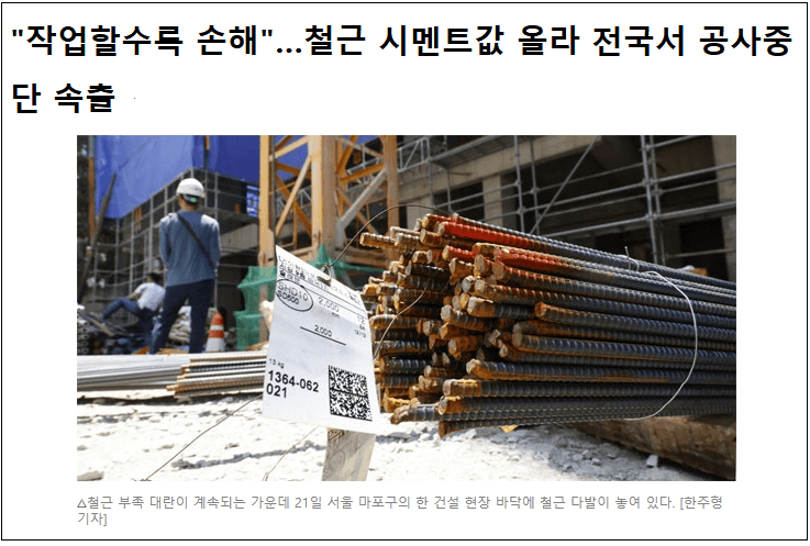 어쩌나! 멈추지 않는 건설현장 자재값 폭등...공사중단 현장 속출