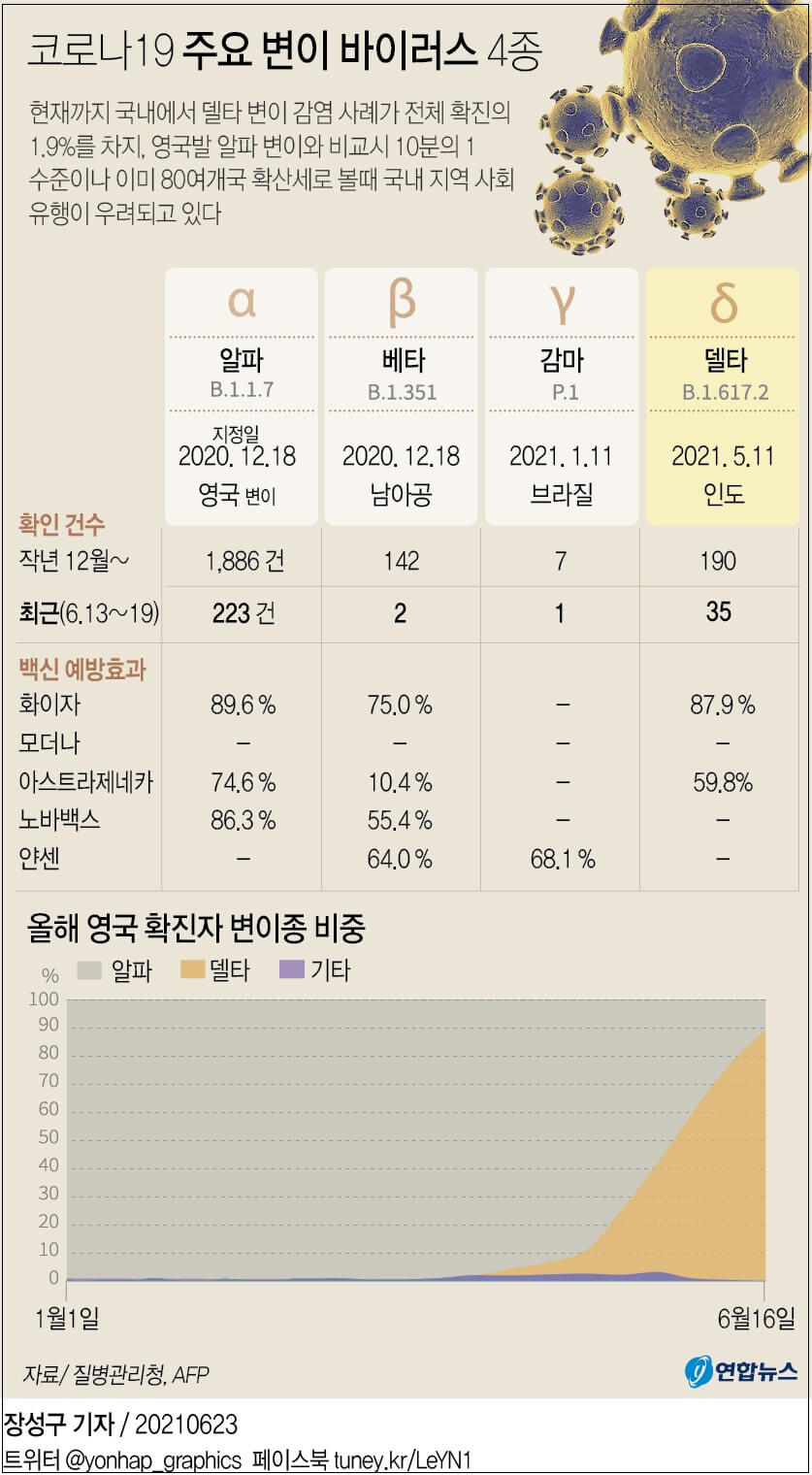 [그래픽] 주요국 코로나19 '델타 변이 바이러스' 확진 현황 ㅣ 코로나19 주요 변이 바이러스 4종