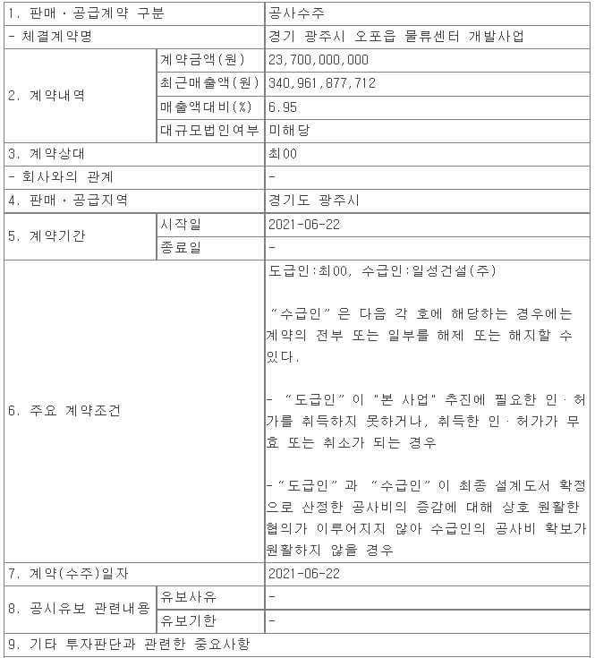 용인 ‘수지 현대아파트 리모델링’ 시공사 선정 ㅣ 일성건설, 경기 광주시 오포읍 물류센터 개발사업 수주