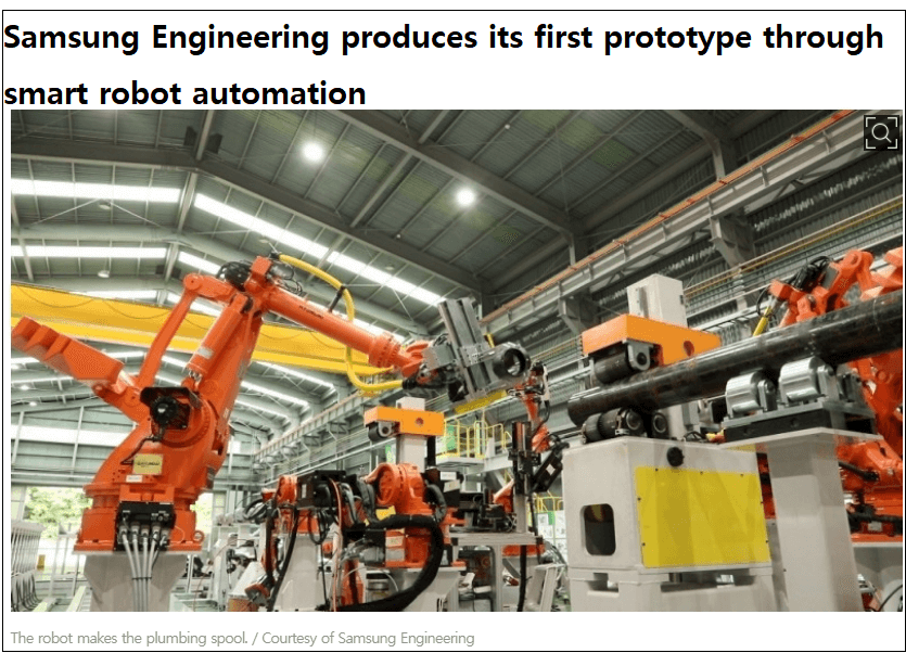 삼성엔지니어링, 세계 최초 스마트로봇 자동화 배관 생산 Samsung Engineering produces its first prototype through smart robot automation