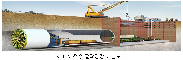 * TBM은 도심지 터널, 하·해저터널, 장대 산악터널 등에서 친환경적이로 경제적인 터널공법으로, 과거 발파에 의한 터널공법과는 달리 터널 전단면을 기계·굴착하는 장비로 소음과 진동을 최소화하고 시공의 효율성을 극대화 할 수 있는 첨단 건설기계