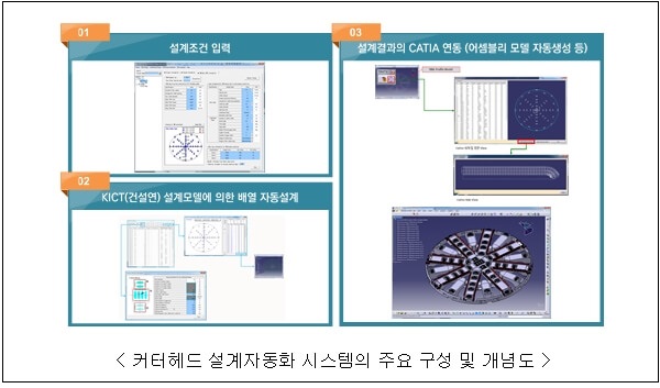 세계 최초로 개발된 “TBM 커터헤드 설계자동화 시스템”은 기존에 수작업으로 이뤄지던 커터헤드 설계를 3차원 프로그램을 통해 다양한 지반 조건을 입력하면 이에 적합한 커터헤드의 설계가 자동으로 이루어지게 하는 첨단 기술로, 현재, 평균 1개월 이상 소요되는 커터헤드 설계 소요기간을 설계 자동화 기술을 통하여 3일 이내 완료할 수 있는 획기적인 기술이다.