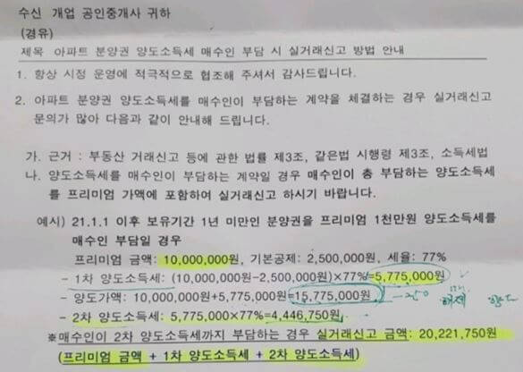 "양도세가 높으니 나라에서 매수자 부담으로 공식 인정하고 신고요령까지 알려줬다."