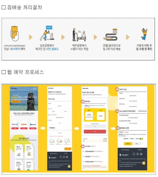 이에 따라, 해당 항공편을 이용하는 승객은 출발 전일 18시까지 짐배송업체 누리집(www.zimcarry.net 또는 검색포털에서 “짐캐리”, “에어패스” 검색)를 통해 출발 항공편, 운항정보 및 배송지 등을 입력하고 예약하면 된다.