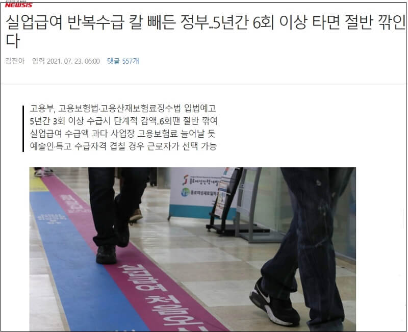 앞으로 5년간 실업급여를 3회 이상 받은 사람이라면 받는 실업 급여액이 최대 절반으로 깎이게 된다.