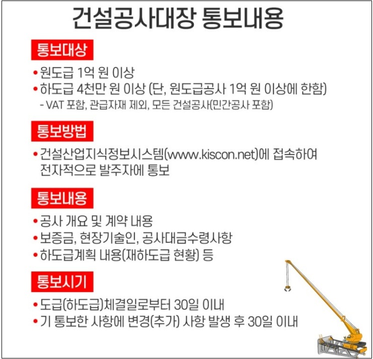 [1] 건설공사대장 통보항목 축소