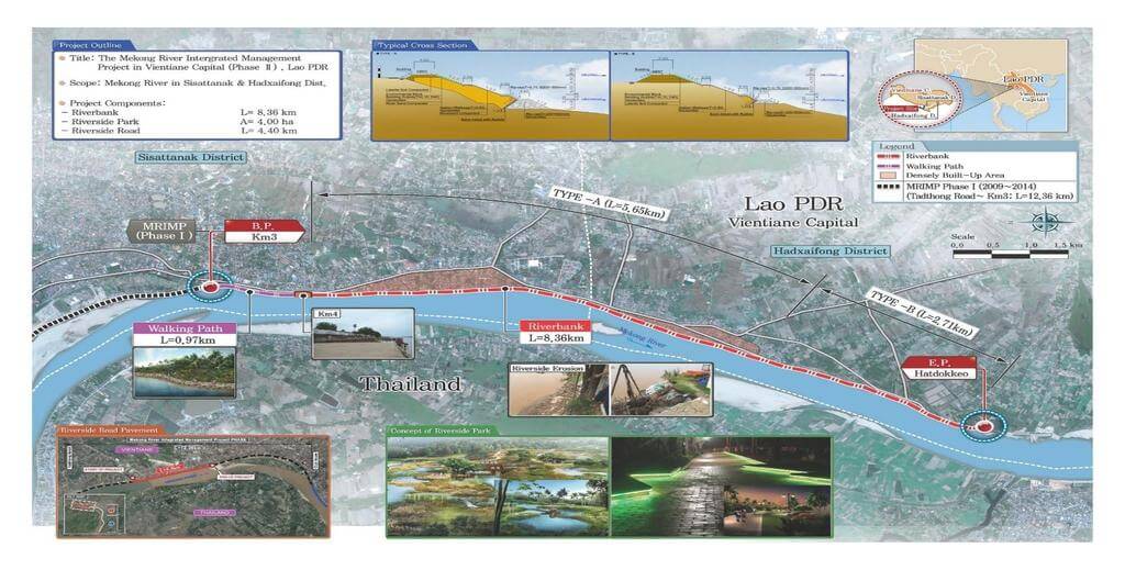 이번 사업은 2014년 완료된 메콩강변 종합관리사업 1차 프로젝트의 후속 사업으로 ▲ 제방축조 및 호안정비(8.3㎞) ▲ 강변공원 조성(5.9㏊) ▲ 강변도로(4.4㎞) 및 산책로(1.01㎞) 조성 등 공사를 포함하고 있다.