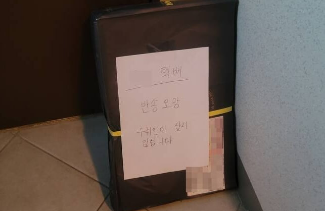 경기도 용인시에 사는 B씨(62)는 자신의 집으로 잘못 배송된 명절 선물 택배 때문에 일주일 넘게 골머리를 앓는 중이다. B씨는 "상품 송장을 보니 주소는 우리 집이 맞으나 수령인 이름이 달랐다"며 "물건을 가져가라고 택배사에 전화도 하고 배달원에 문자도 남겼는데 연락이 없어 지금 일주일 넘게 집 앞에 그대로 남겨져 있다"고 말했다.