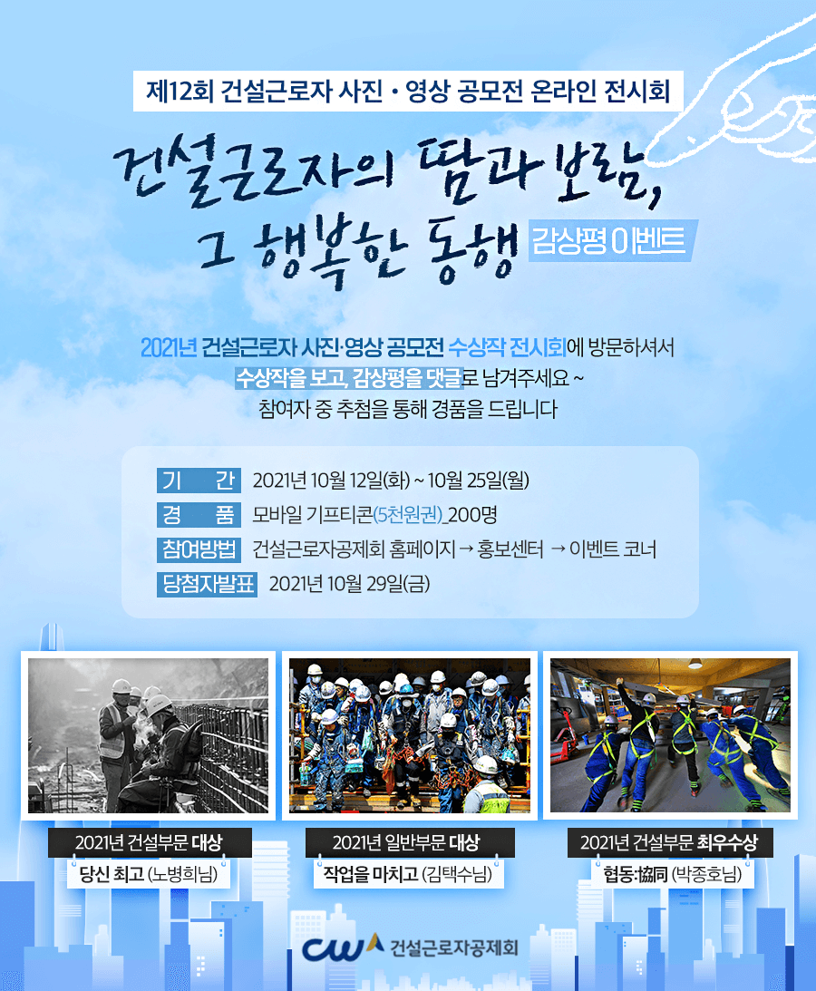 제12회 건설근로자「사진·영상 공모전」수상작 온라인 전시회 [건설근로자공제회]