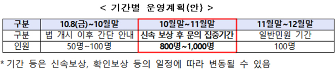 신속보상 온라인 27일부터, 오프라인 11월 3일부터 신청 가능