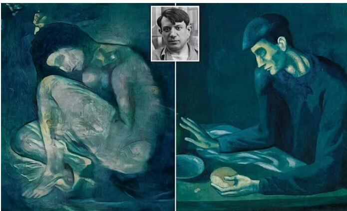 피카소가 '로네솜 크라우칭 누드'와 '맹인 남자의 실'을 그린 시간은 수공예와 예술가들이 전시되어 있으며, 연기와 함께 작품을 형성하고 있다.