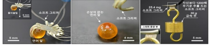 또한 로봇 자체 무게보다 최대 6,400배 무거운 물체를 순간적으로 들어 올리는 한편 돼지 혈관을 상처 없이 잡아 맥박을 측정하였는데, 이는 ‘마이크로미터 단위의 미세 유기체를 상처 없이 잡아 미세 생체 신호를 측정한 최초의 사례’라고 연구팀은 설명했다.