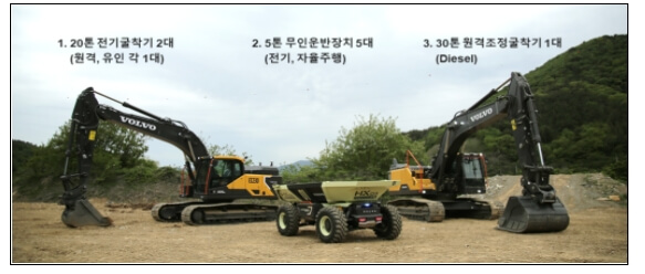 또한, 5G 통신을 통해 건설정보관제센터에서 건설장비(전기)를 무인·원격으로 조정하는 MG*(Machine guidance)·MC**(Machine control) 기술로 토석 23만㎥***을 절취·운반·성토 작업을 시행할 예정이다.